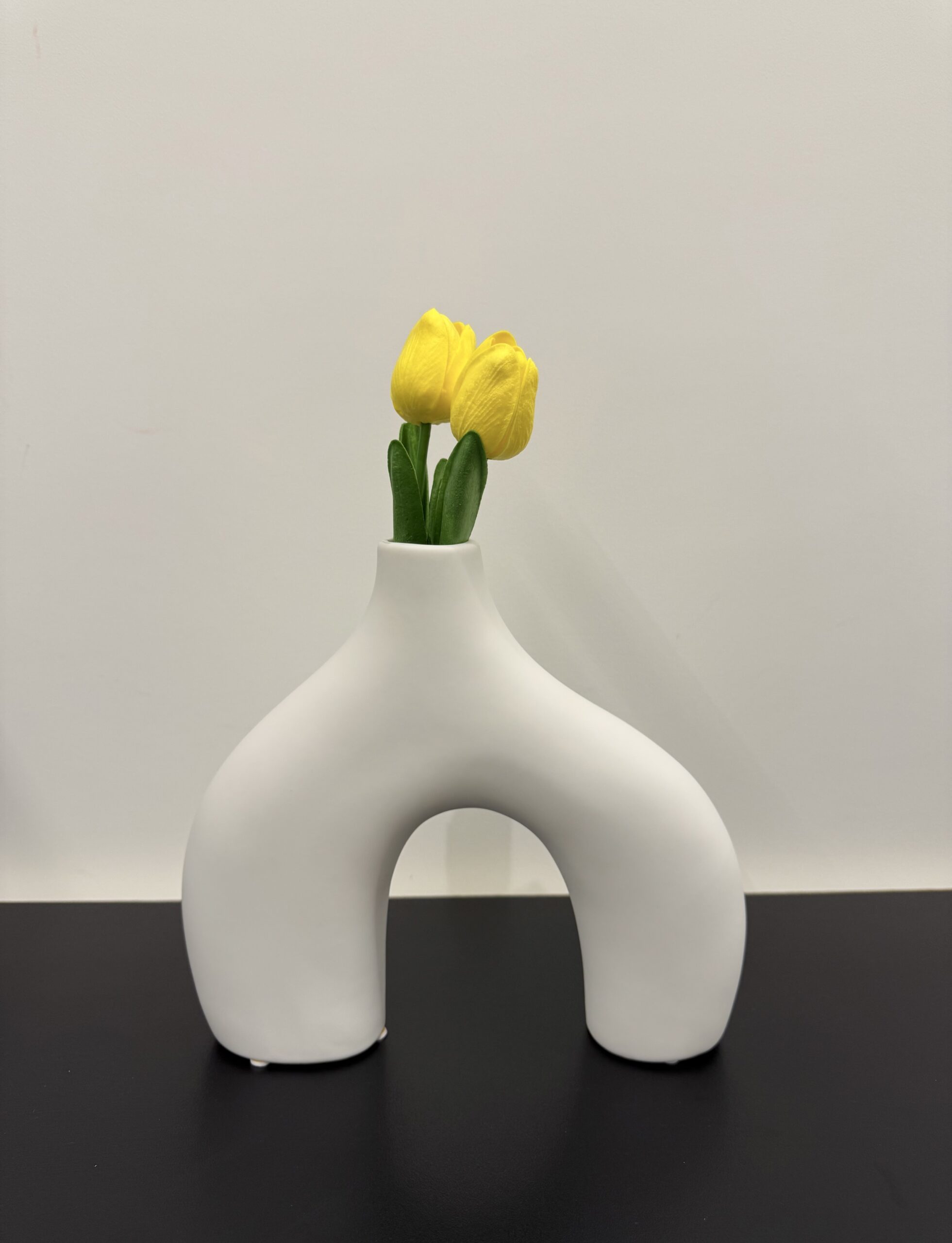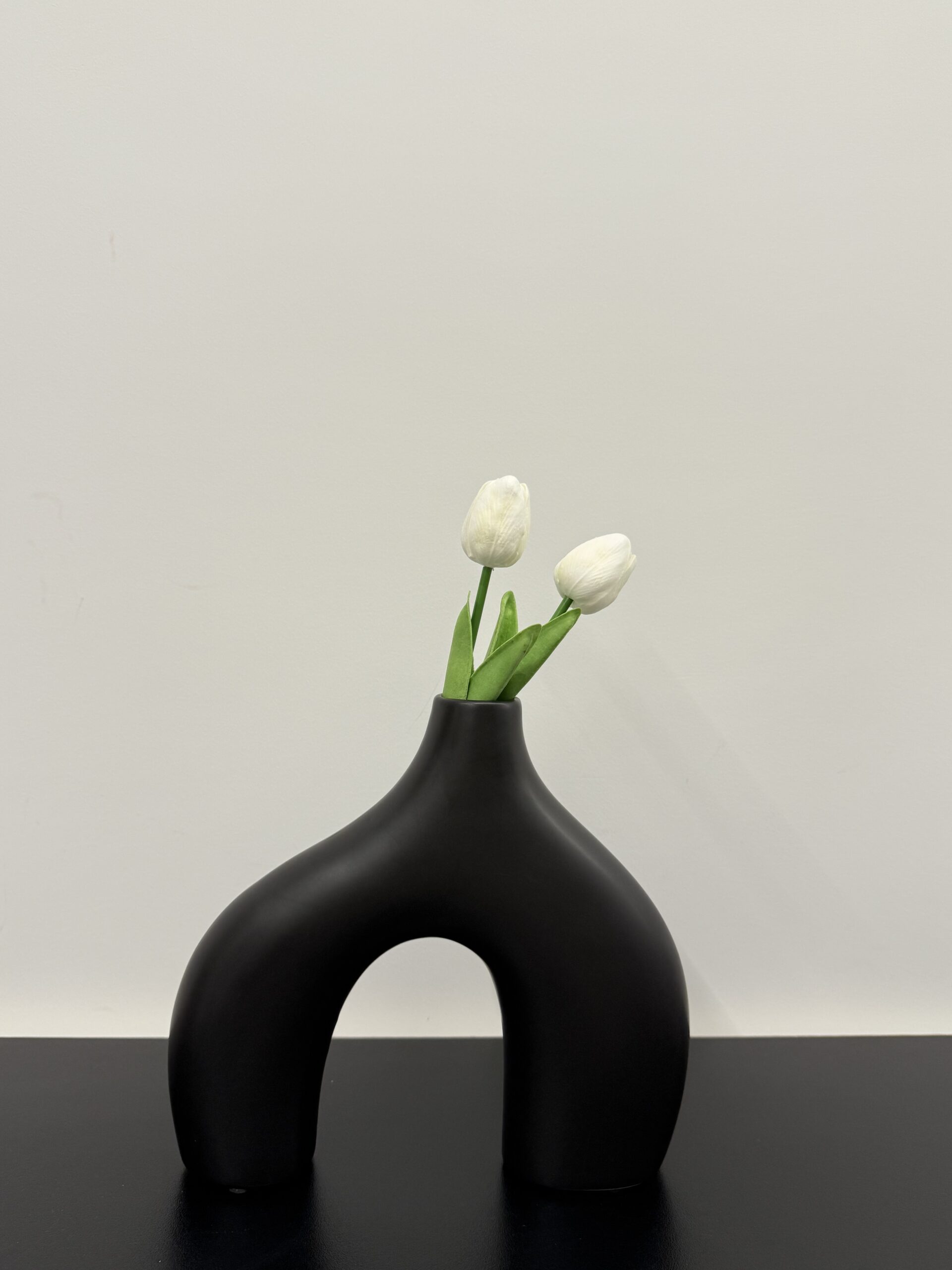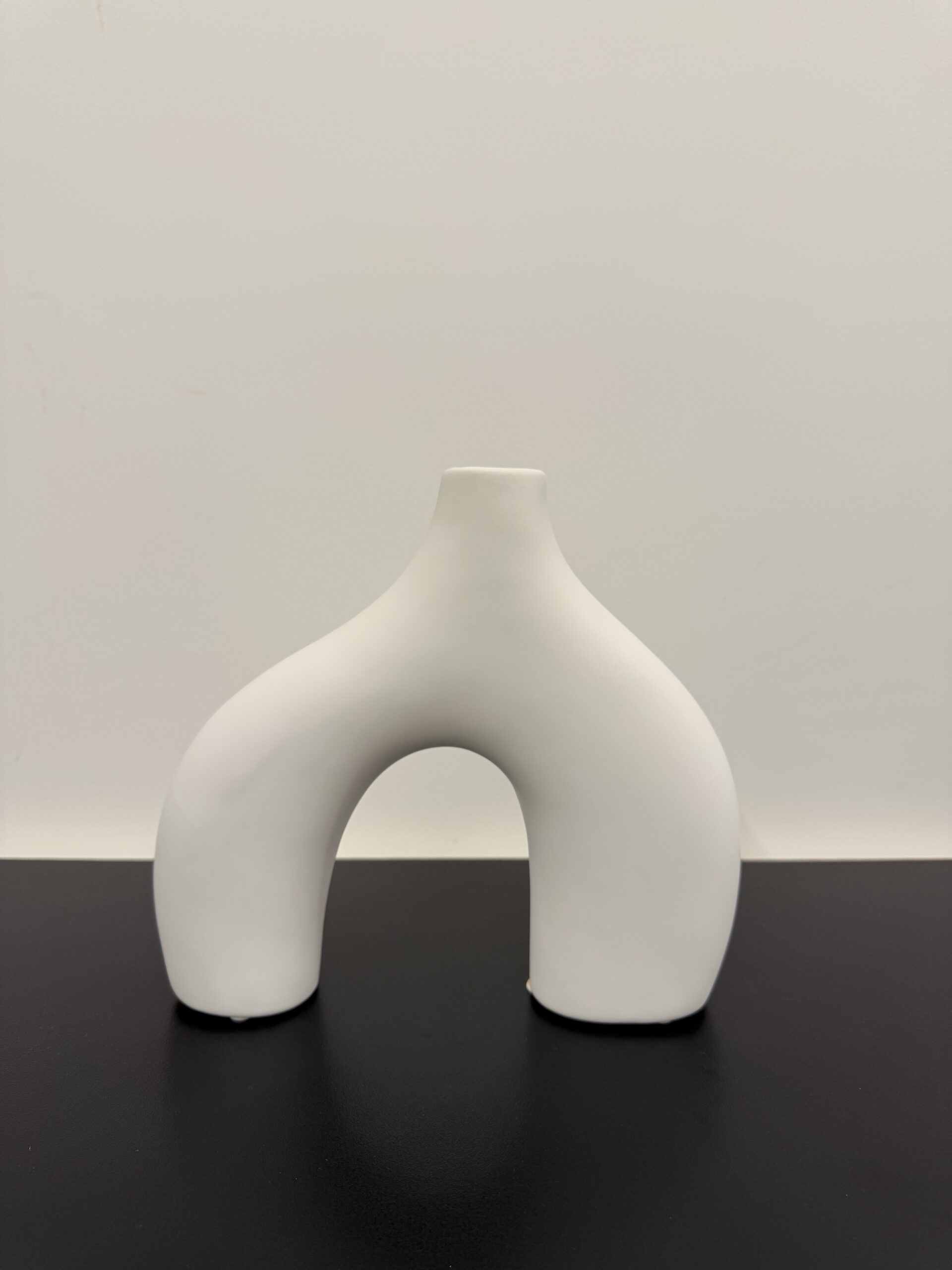 A bold statement piece, this sculptural vase features an eye-catching arch silhouette in a smooth matte finish. Its modern, minimalist form adds artistic flair to any space — ideal as a standalone art object or paired with dried stems for a dramatic effect.