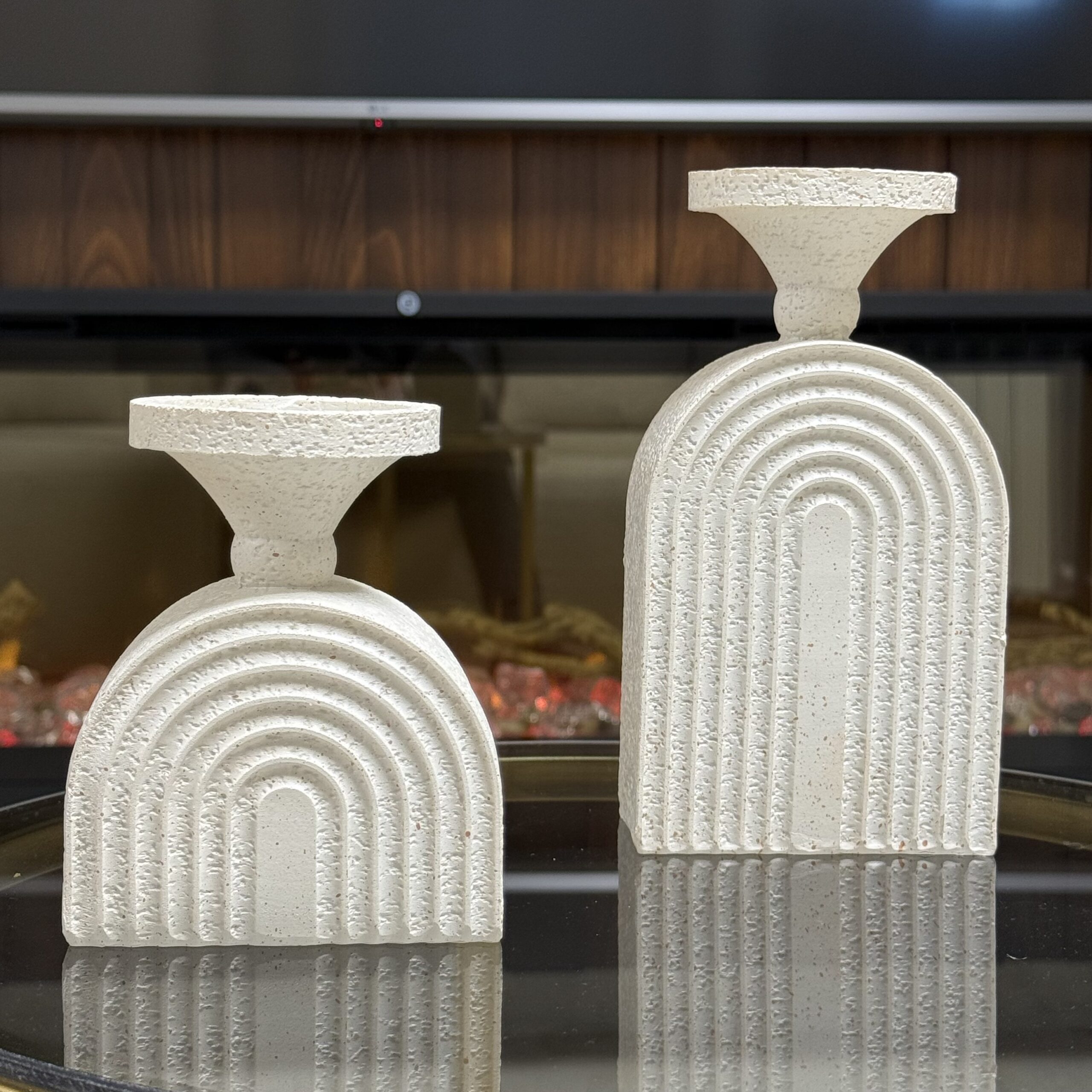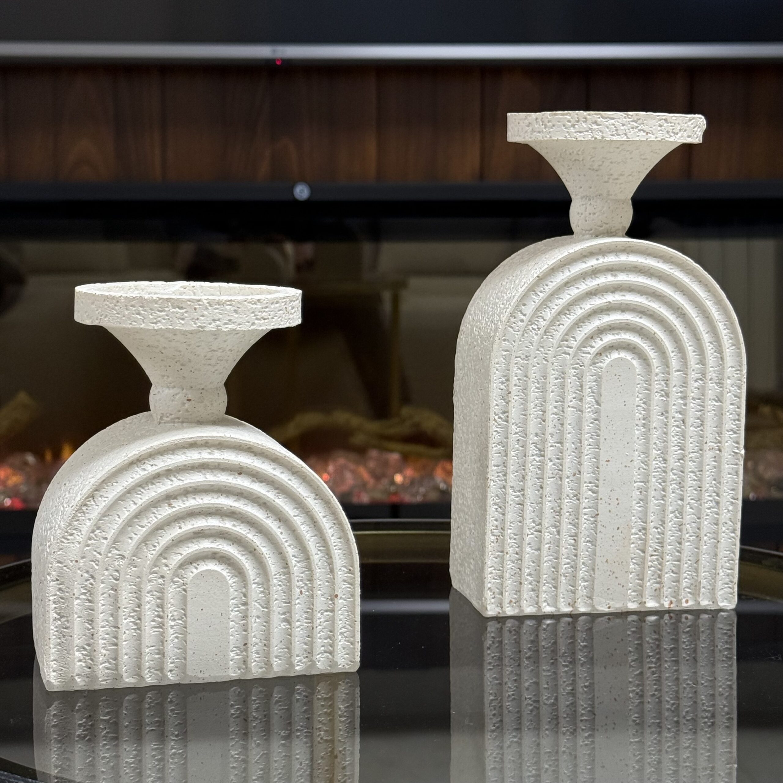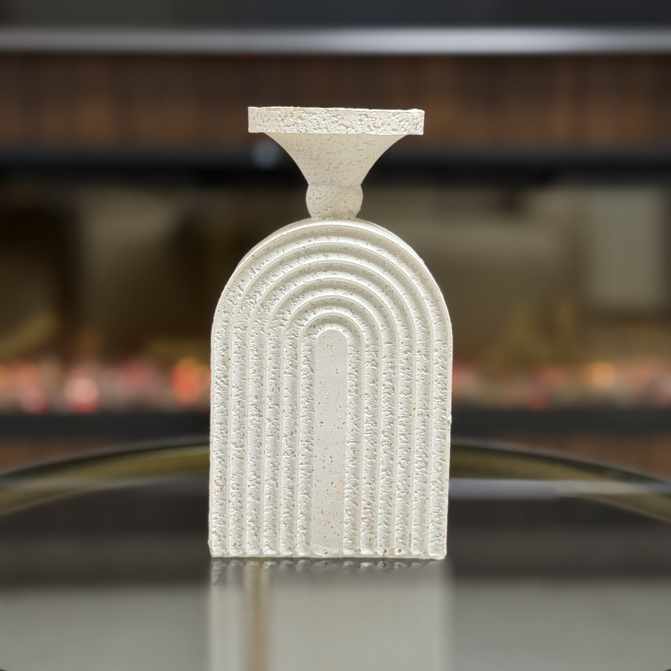 A sculptural candle holder crafted from high-quality resin, featuring layered arch detailing and a soft matte finish. Arcora brings architectural warmth and modern elegance to any interior.