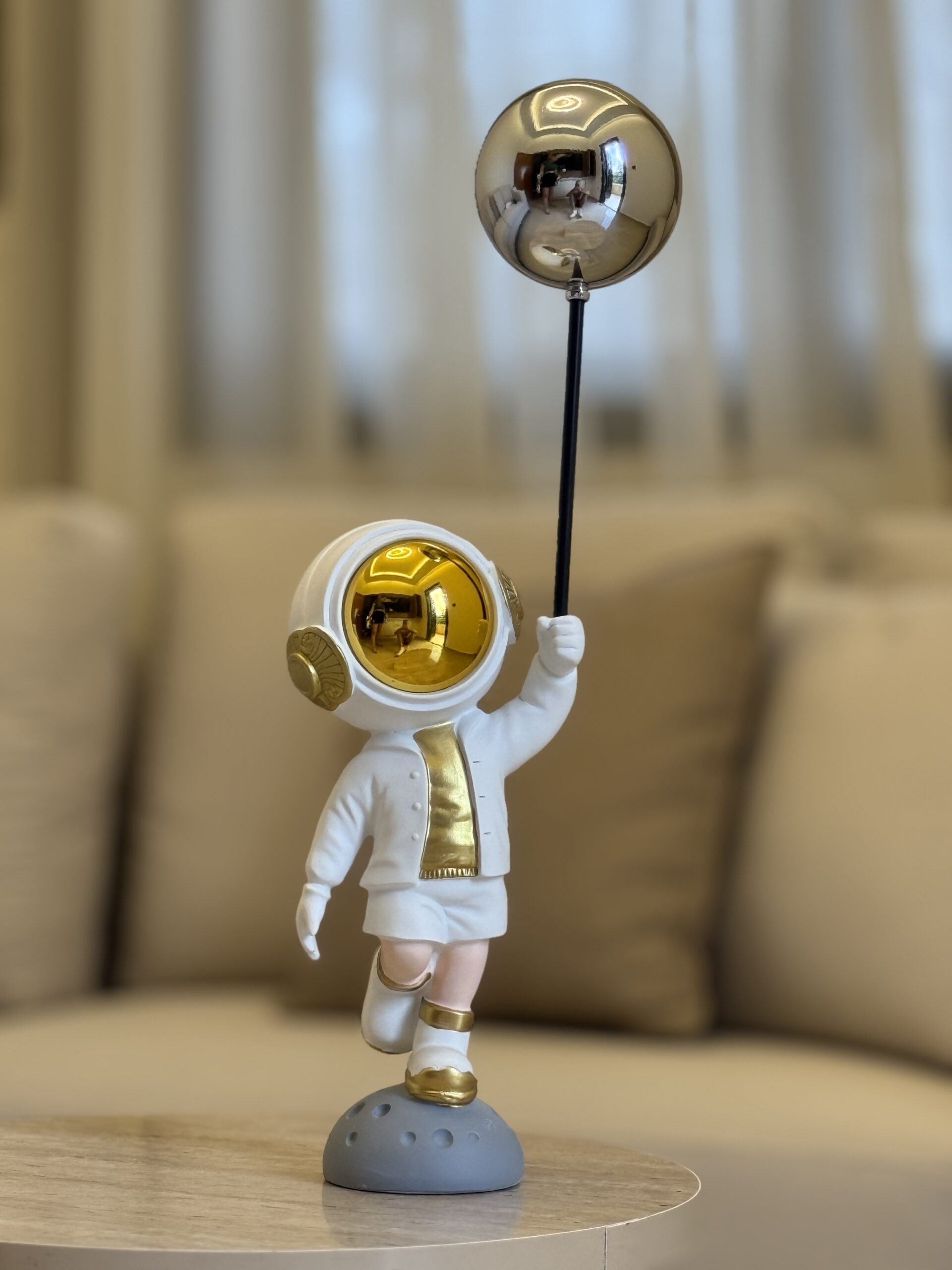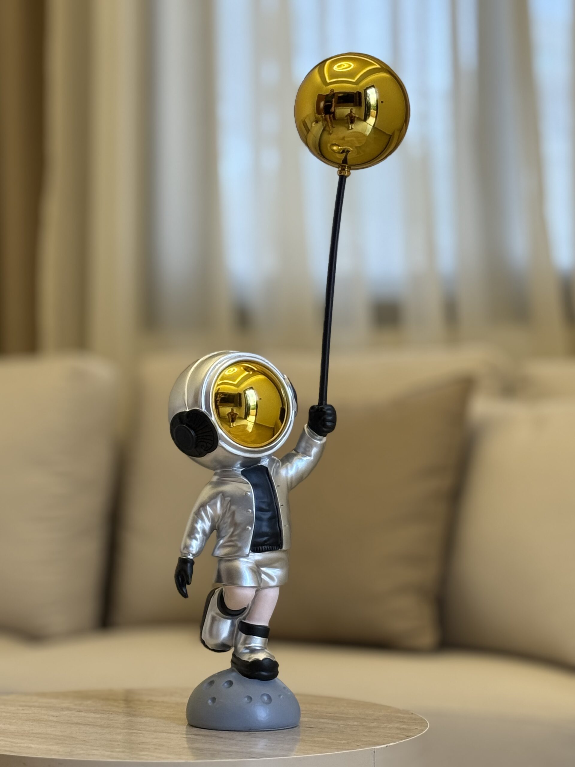 Elegant astronaut figurines crafted from high-quality resin, available in two stunning color options — gold and silver. Each sculpture features a glossy balloon and golden helmet, symbolizing dreams and exploration. A perfect modern decorative piece that adds a playful yet luxurious cosmic touch to your home or office décor.