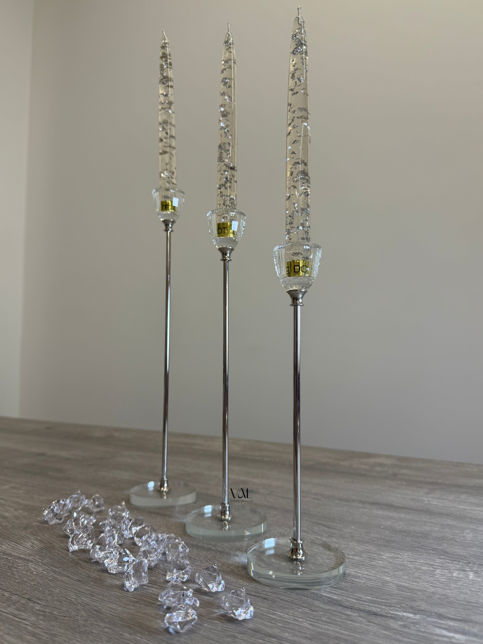High-quality stainless steel candle holders available in silver.