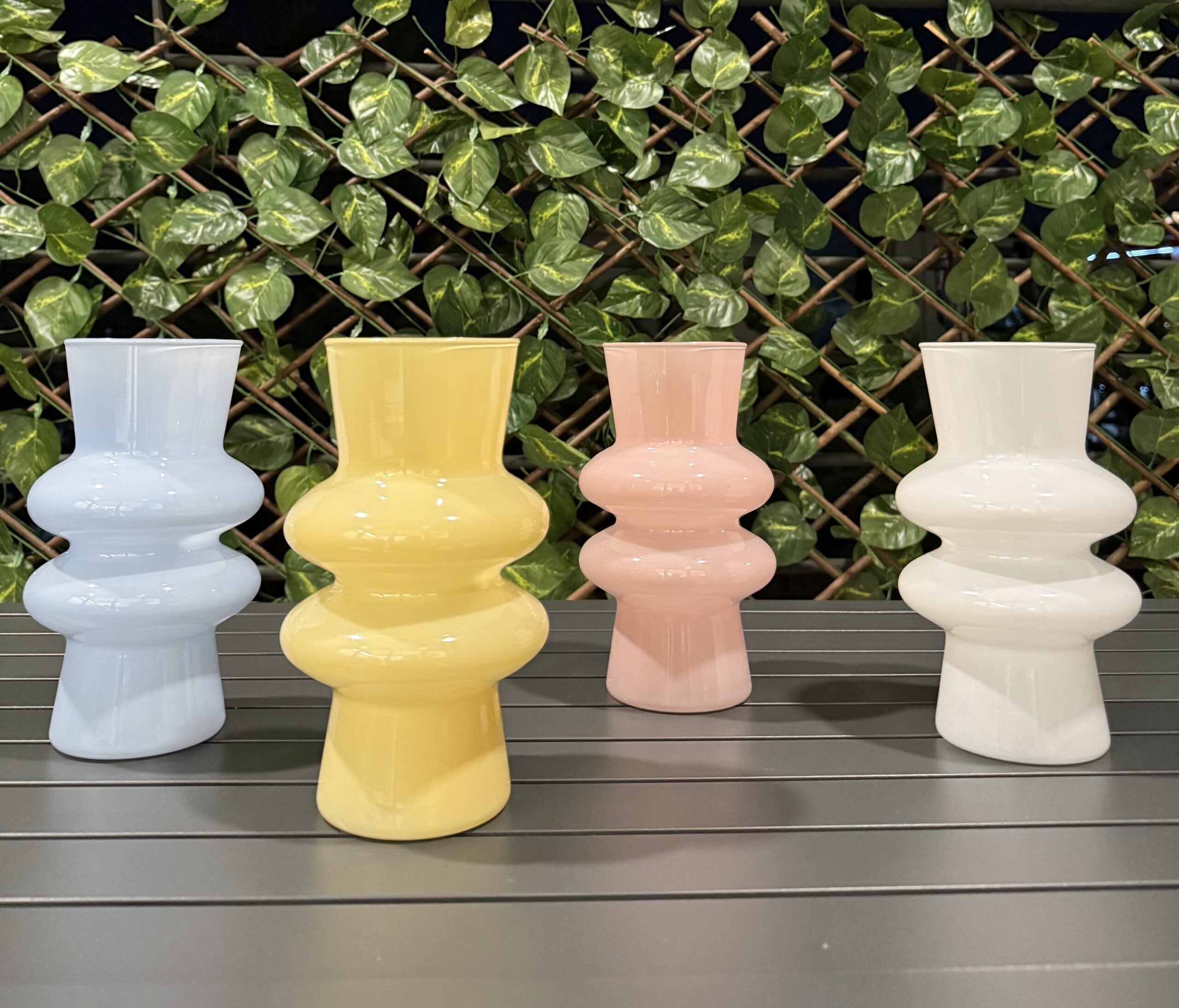 Stylish and eye-catching, this double bubble glass vase features two rounded spheres stacked vertically, creating a playful yet elegant silhouette. Crafted from clear or tinted glass, it’s perfect as a modern accent piece or for showcasing single-stem flowers and greenery.