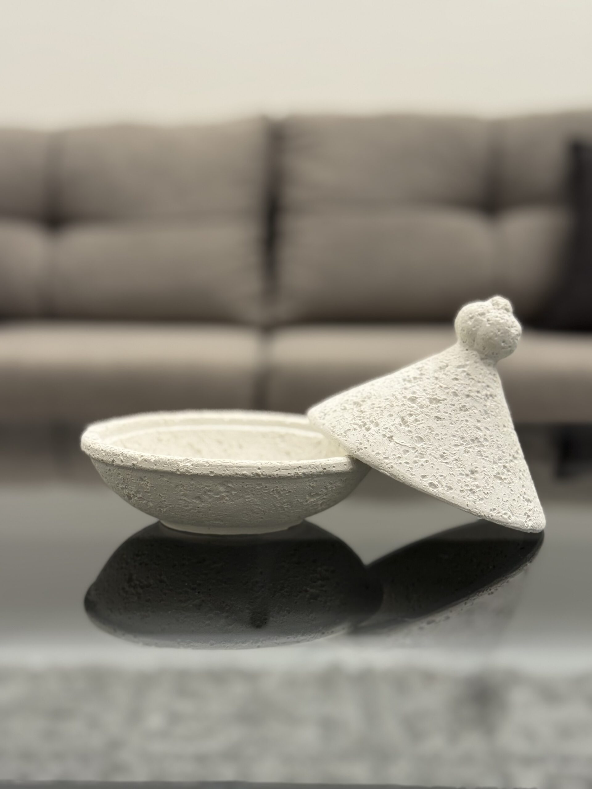 A beautiful handmade ceramic box with a unique textured finish, perfect for candy, sugar, nuts, or small items, adding a modern and elegant touch to any table.