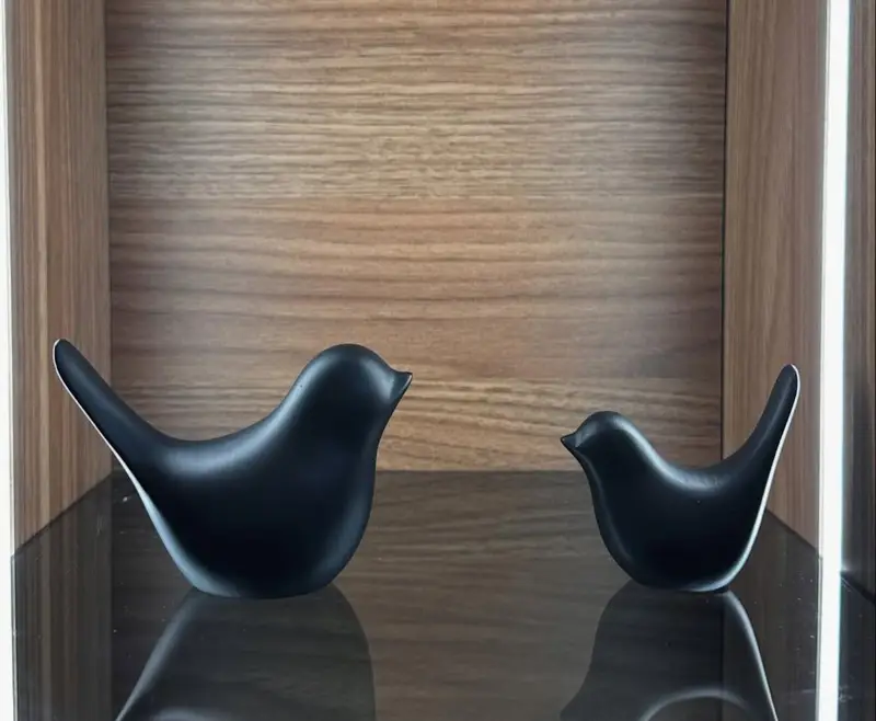 A modern resin bird statue featuring detailed wings and a graceful beak, with a smooth, minimalist body design. A perfect blend of art and nature, bringing a touch of sophistication to any space.