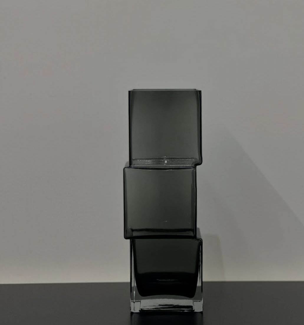 This modern vase features three offset cubes stacked vertically, creating a striking, asymmetrical silhouette. Perfect for adding a touch of contemporary art and sophistication to any space. Ideal for fresh blooms or as a standalone statement piece.