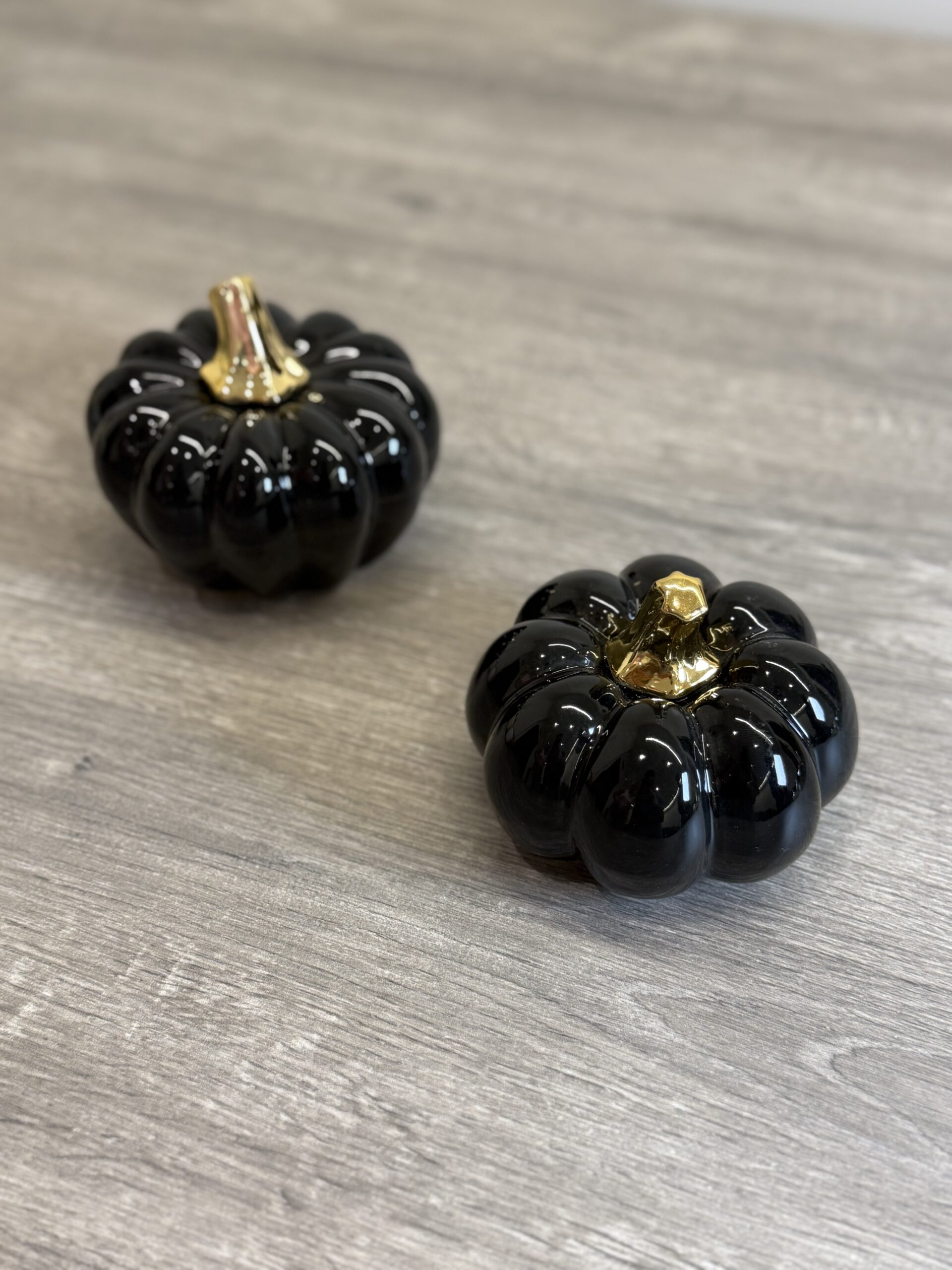Elegant ceramic pumpkins available in 2 sizes — small and medium.