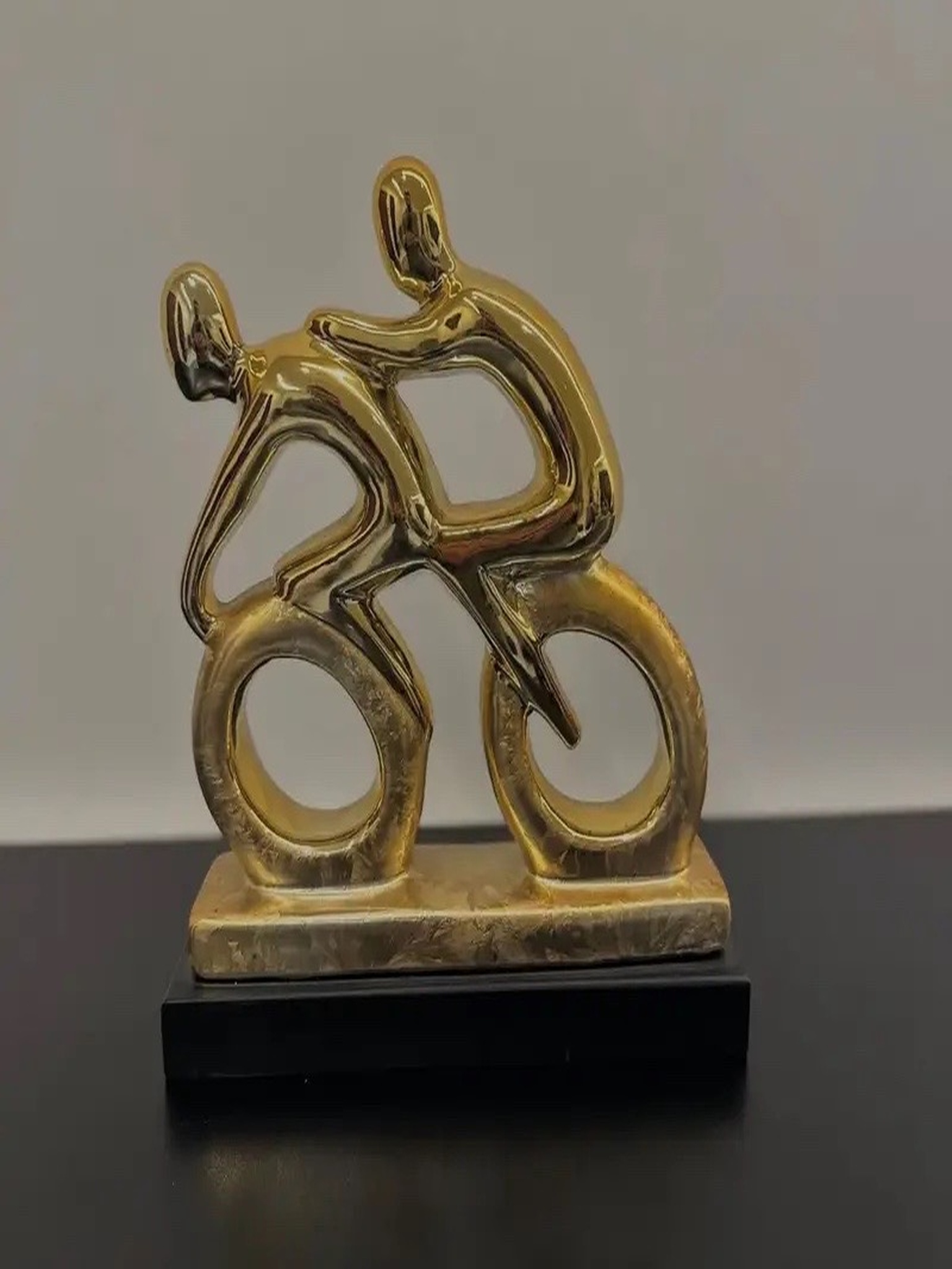 A striking crystal sculpture featuring two abstract gold-toned figures riding in unison. With its smooth finish and modern form, this piece adds movement, elegance, and a touch of luxury to any décor.