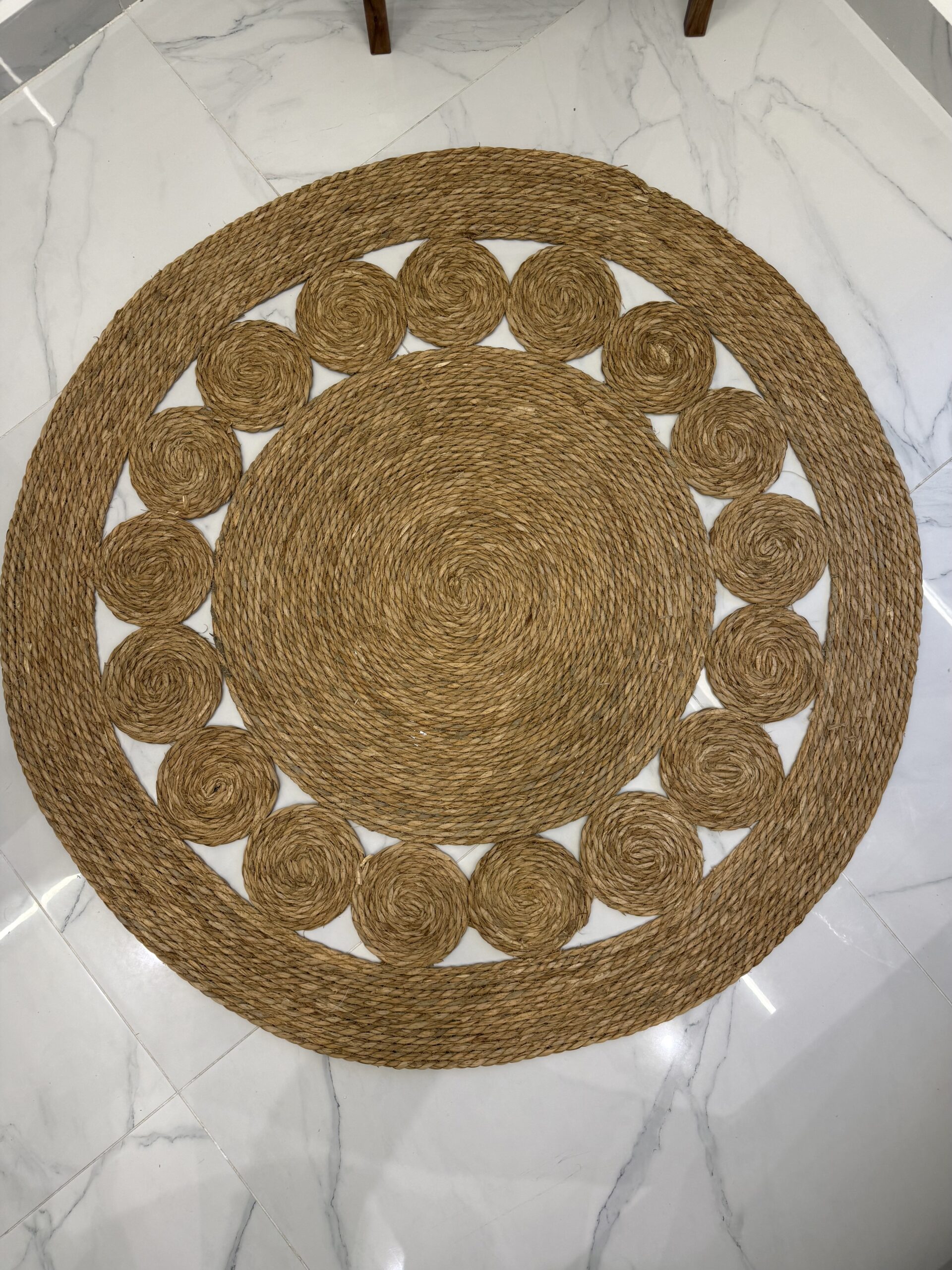 A handcrafted round mat featuring concentric woven circles in natural fiber. Warm, textural, and timeless—perfect for elevating table settings or décor displays.