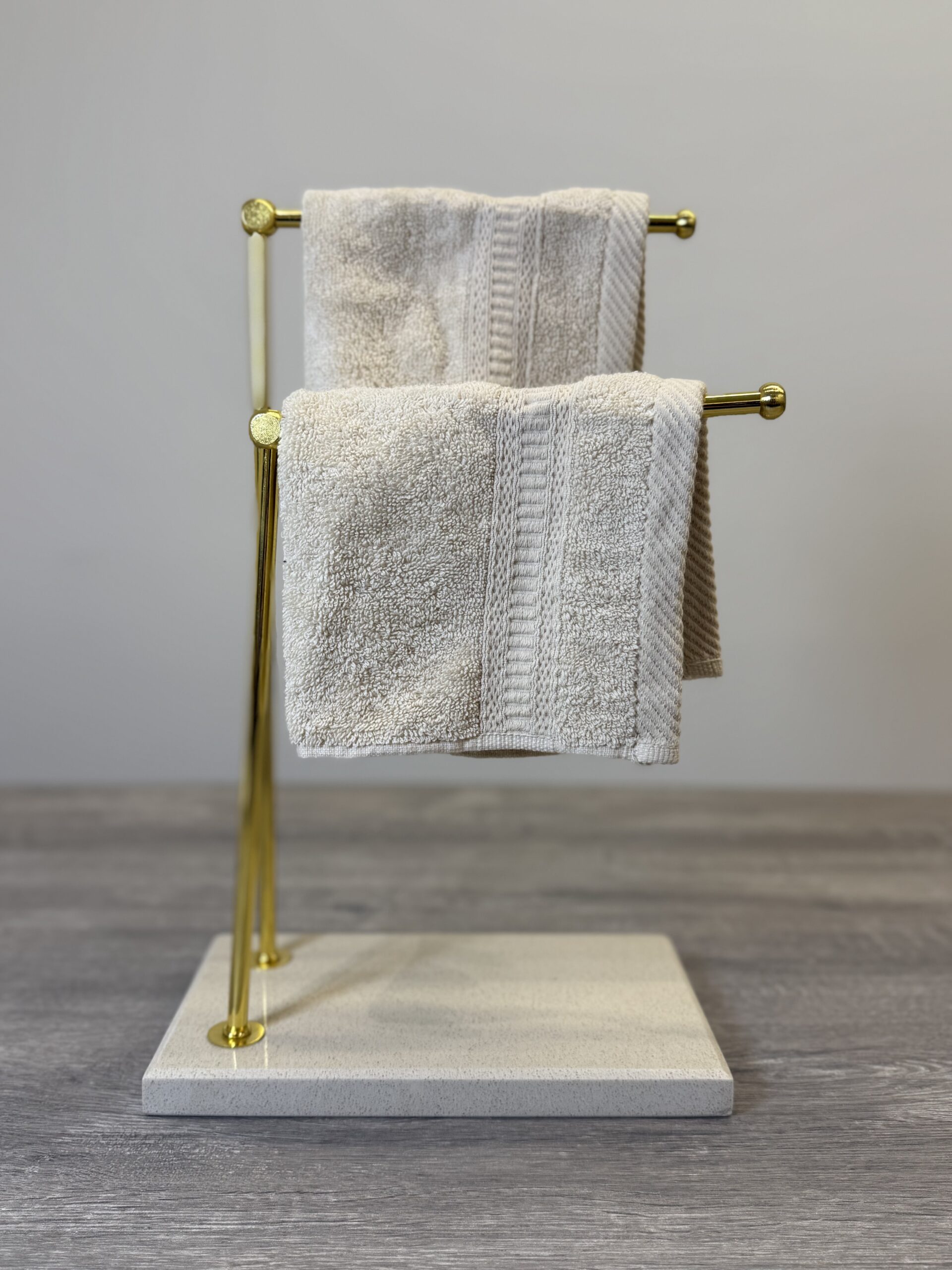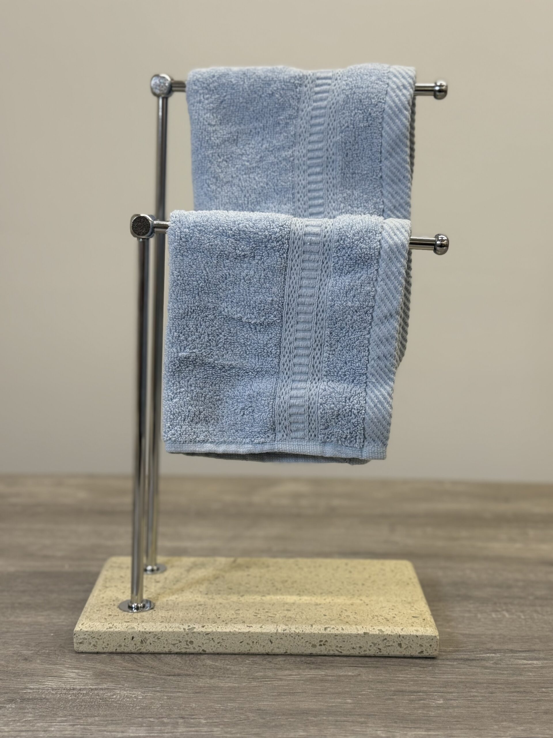 A sleek towel stand with a sturdy, space-saving design — practical, stylish, and perfect for keeping towels neatly organized and within reach.