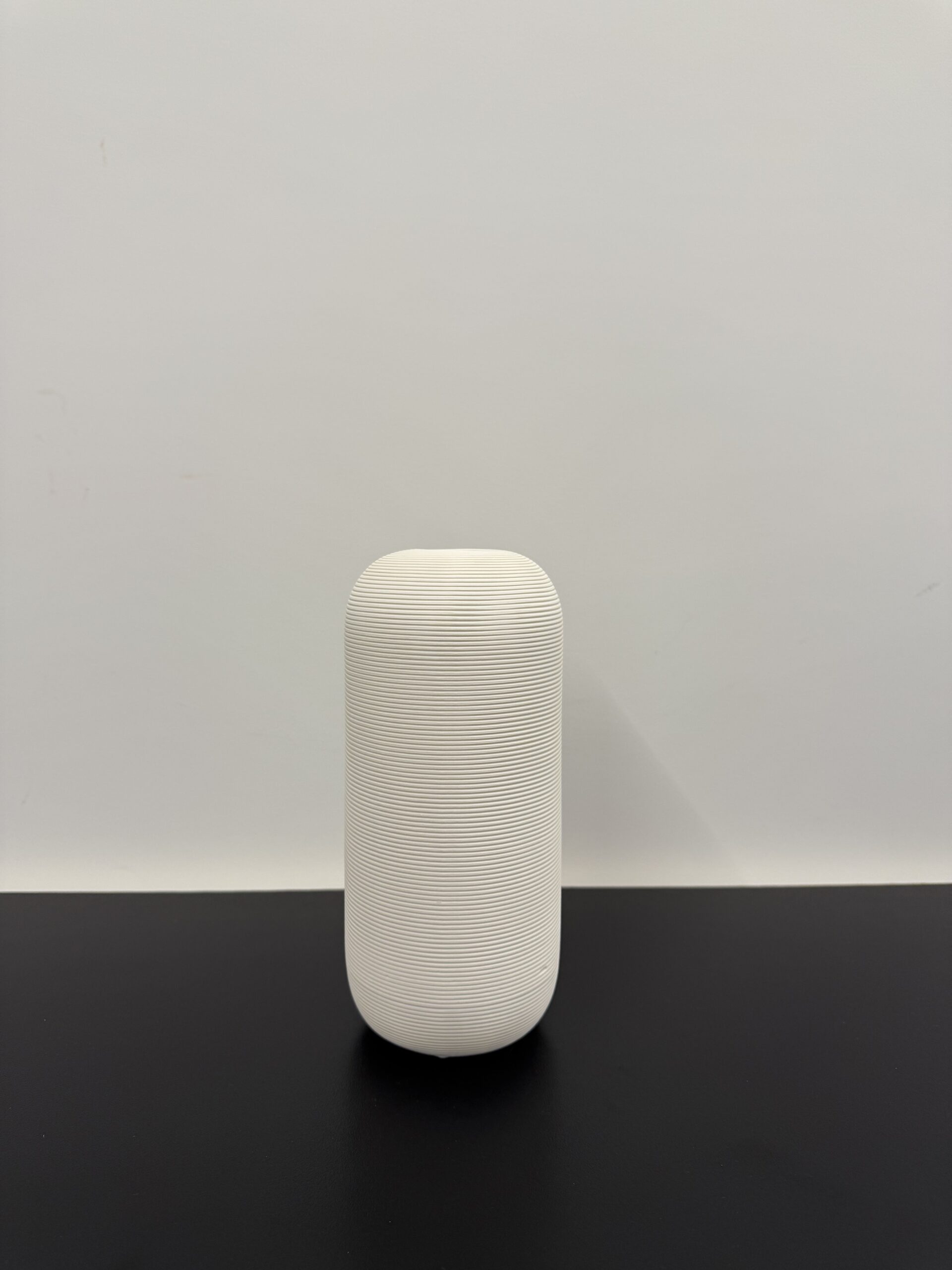 A sleek and modern piece, this white ceramic vase features a classic cylindrical shape accented with subtle horizontal stripes. Its minimalist design adds texture and elegance, making it perfect for fresh or dried floral arrangements. Ideal for contemporary home decor.